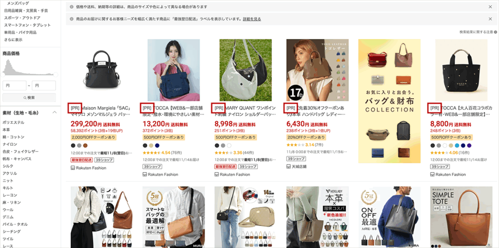 - 楽天市場で検索をした際、検索結果上部に掲載される広告