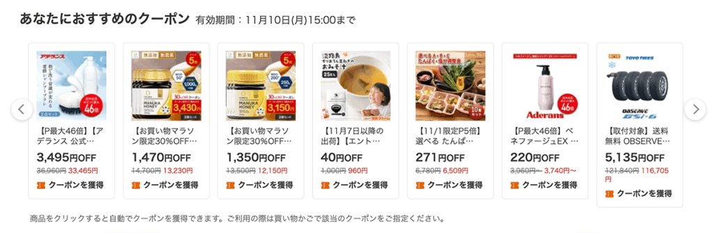 - お客様が興味を持ち、クーポンをクリックすると、クーポンの獲得と同時に、商品ページへ移動する(この時点でクーポン獲得単価として、40円が発生する)