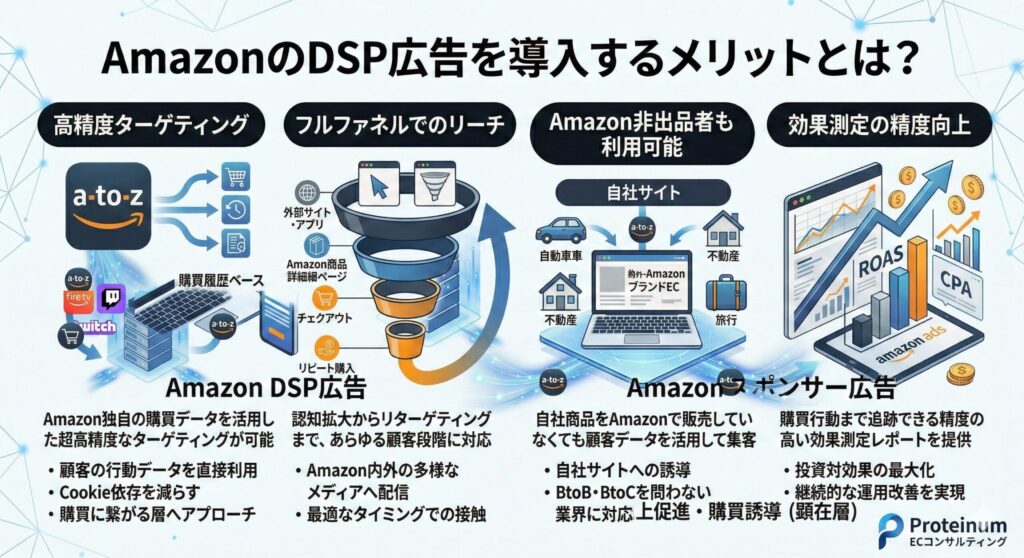 この記事は、これまでの支援実績が1,000社以上、広告運用実績年間10億円以上の弊社(Proteinum)がAmazonのDSP広告について解説します。