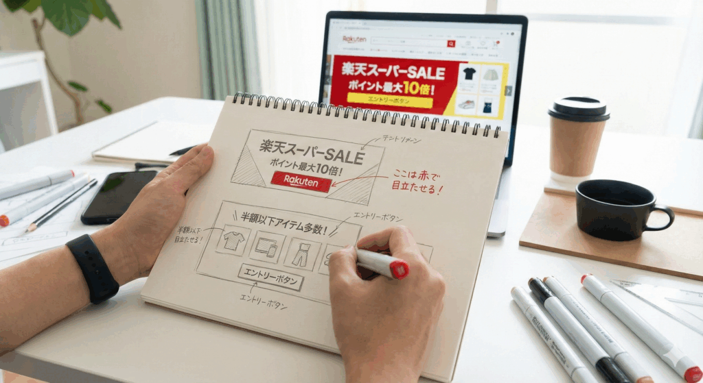 楽天市場で成果を出すバナーに必要なのは、芸術的なセンスではなく、「お客様を行動させるための正しいロジック(設計)」です。