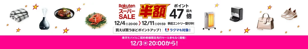 | 【中】 | 商品名・期間・画像 | 視認できるサイズで配置。 (例:お買い物マラソン期間中、商品写真) |