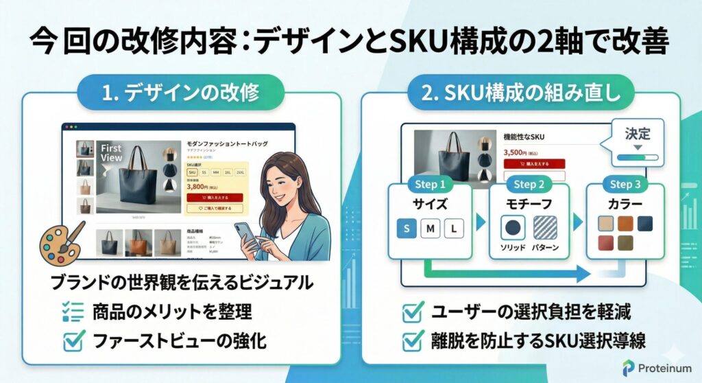 今回の改修内容:デザインとSKU構成の2軸で改善