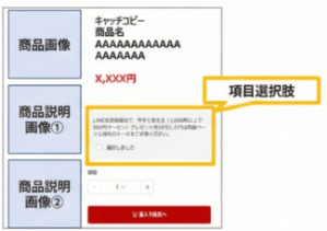 【実施施策】商品オプションにLINEお友達登録でクーポンプレゼントのテキスト追加