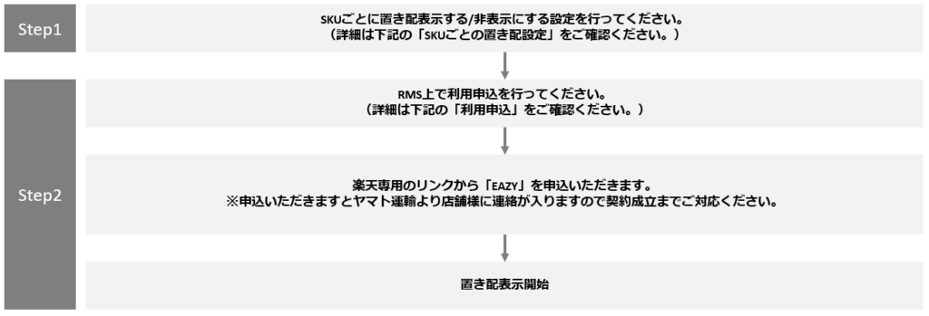 SKUごとの設定に加え、RMS上での利用申込みを完了させる必要があります。申込みの手順は以下のとおりです。