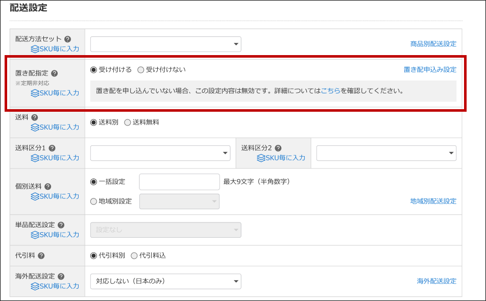 - SKUごとの置き配表示設定を行う