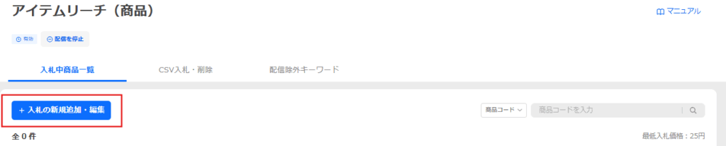 [+入札の新規追加・編集]をクリックします。
