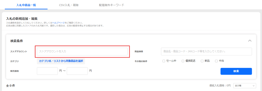 ※広告出稿に同意したストアのみ入札可能です。