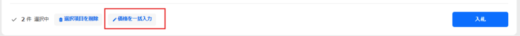 チェックをした全商品を同じ価格で入札したい場合は、該当商品にチェックがあることを確認のうえ、[価格を一括入力]をクリックします。