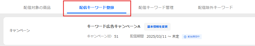 キーワード広告の登録後、登録した配信対象商品や配信キーワードを編集できます。