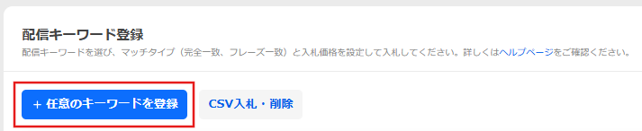 [任意のキーワードを登録]ボタンをクリックし、配信キーワードの新規登録画面を表示します。