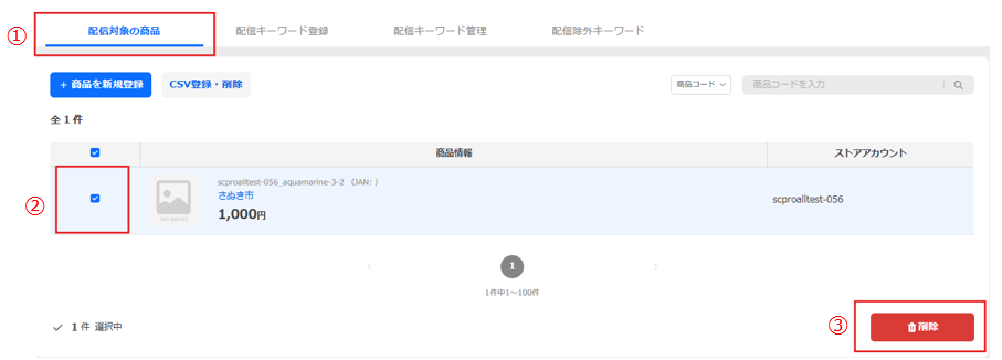 配信対象商品の削除