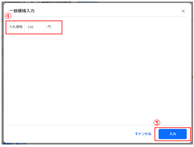 設定したい入札価格を入力し(④)、[入力]ボタンをクリックします(⑤)。