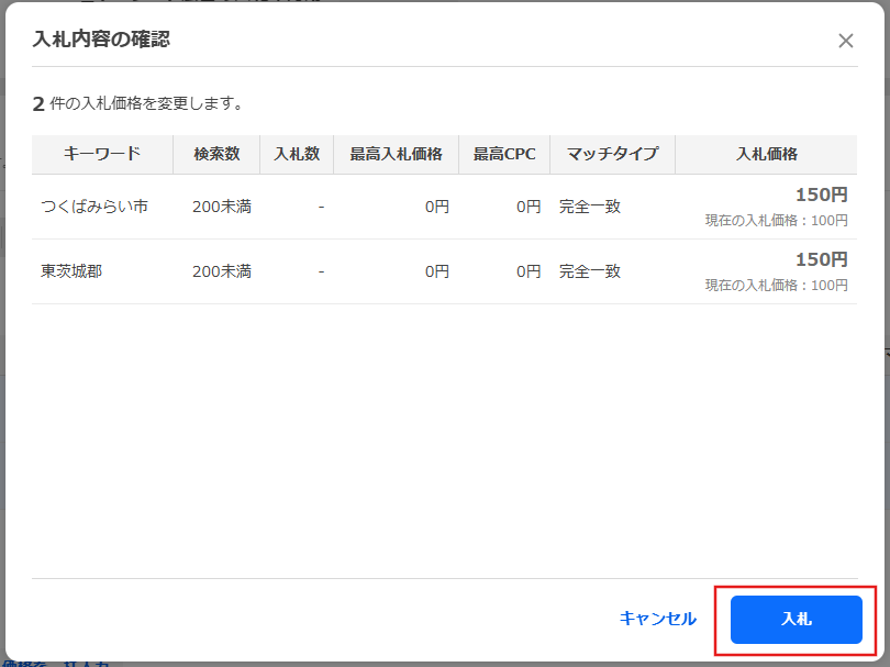 [入札]ボタンをクリックし、変更を完了します。